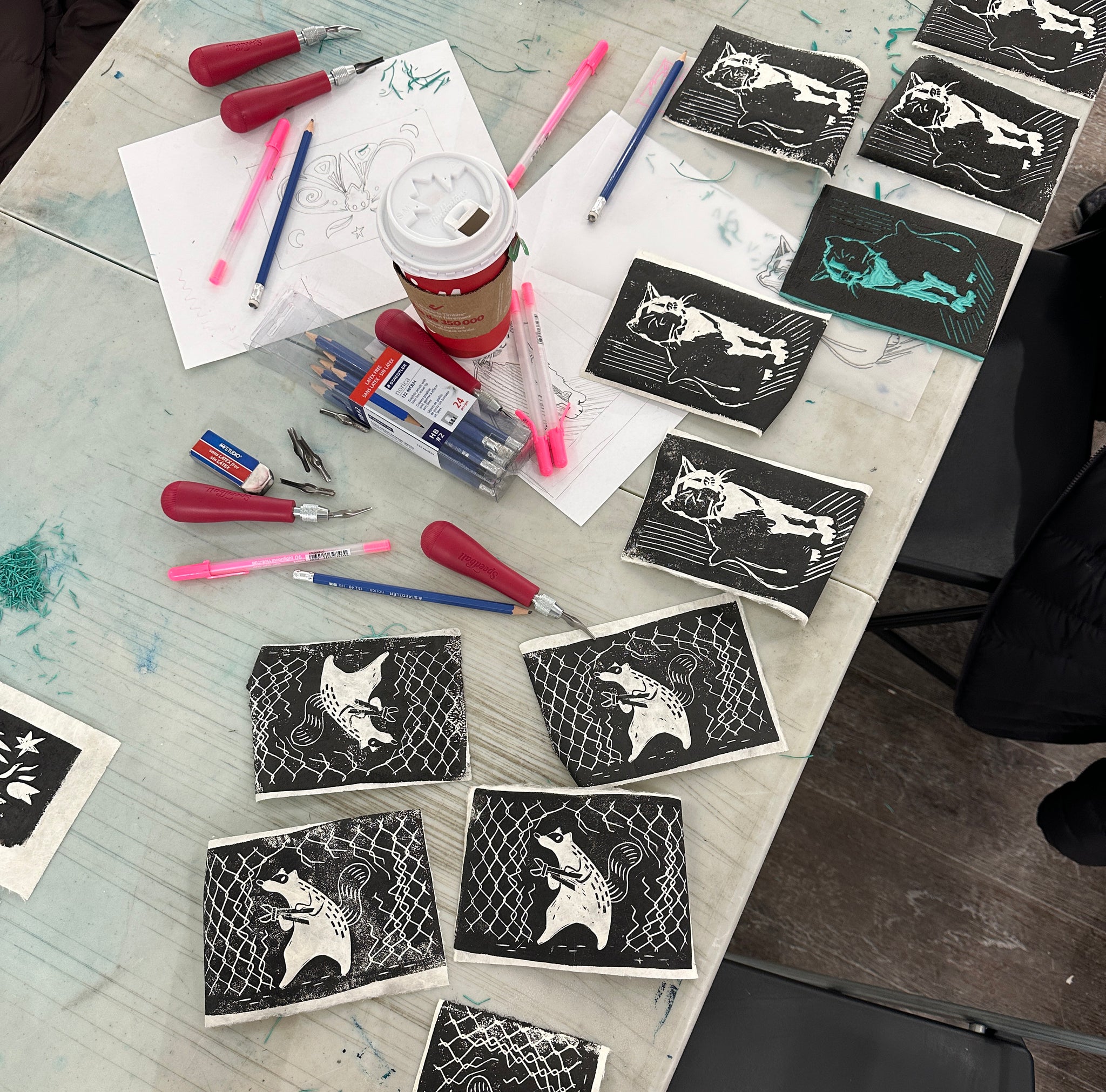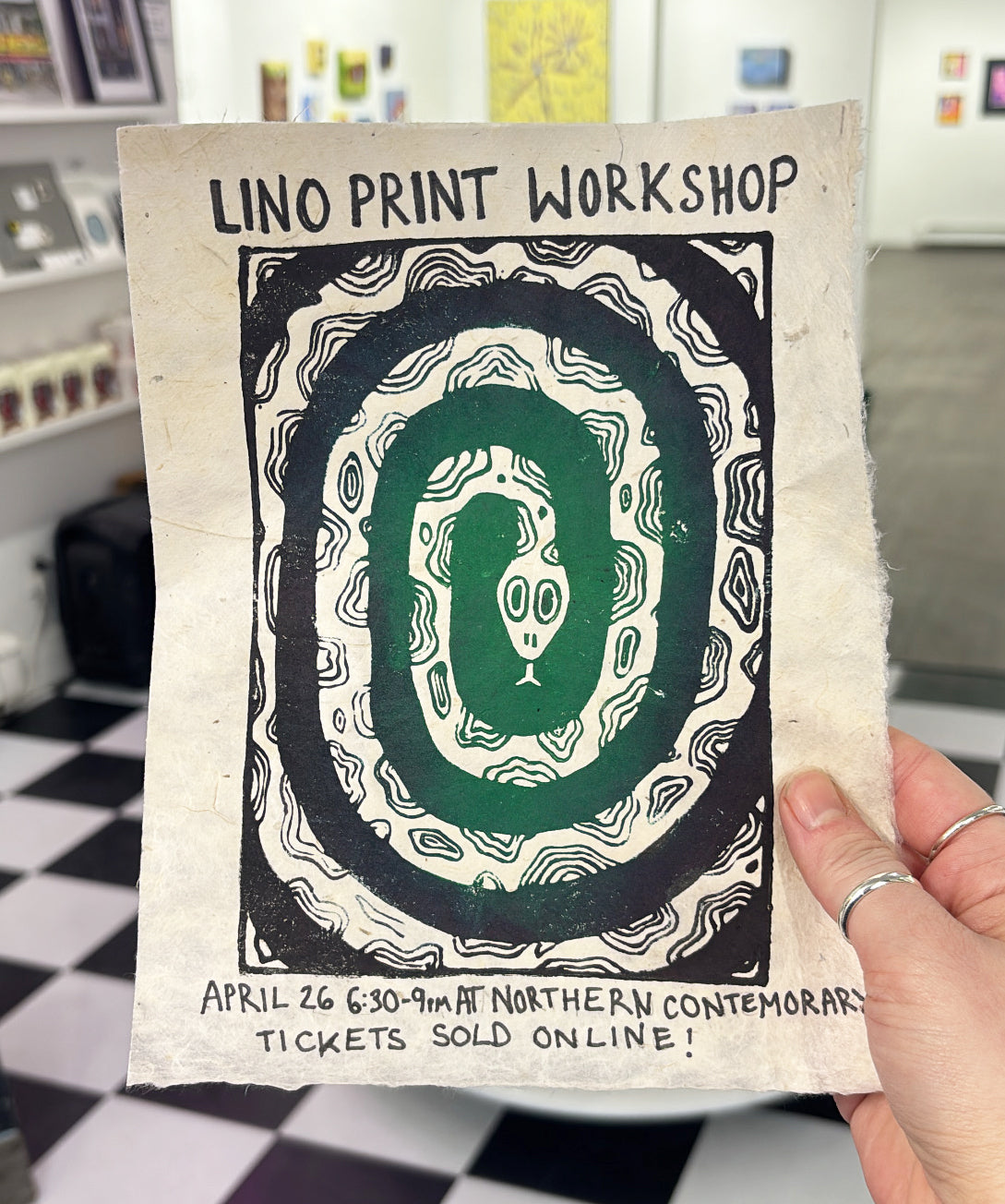 Join us for a Lino Cut workshop with Yoana V., a local artist and printmaker. During the workshop. you will learn how to design, carve, ink, and create your own linocut prints. This guided workshop is designed for participants age 16+ at any level of artistic skill. We will go over vocabulary, techniques, materials, and safety before diving into creating your own lino block stamp! Each participant will get a chance to carve and print a 6x4 inch black and white print. At the end of the two hour workshop, you will be able to take home several black and white prints of your making, as well as your custom lino block and the know-how to make many more!