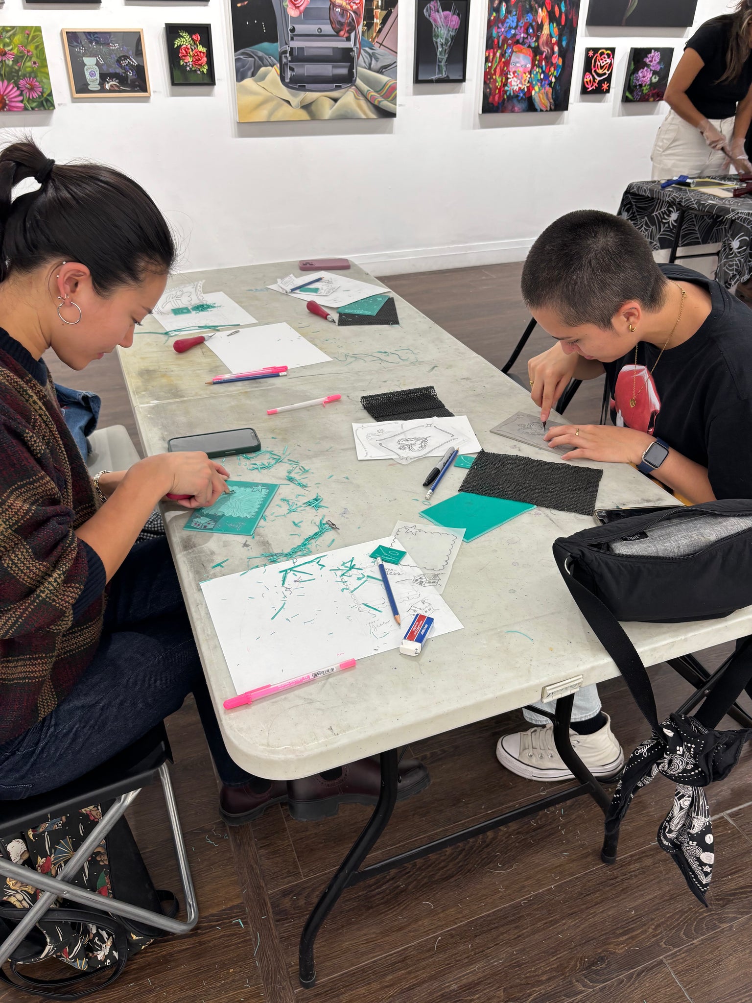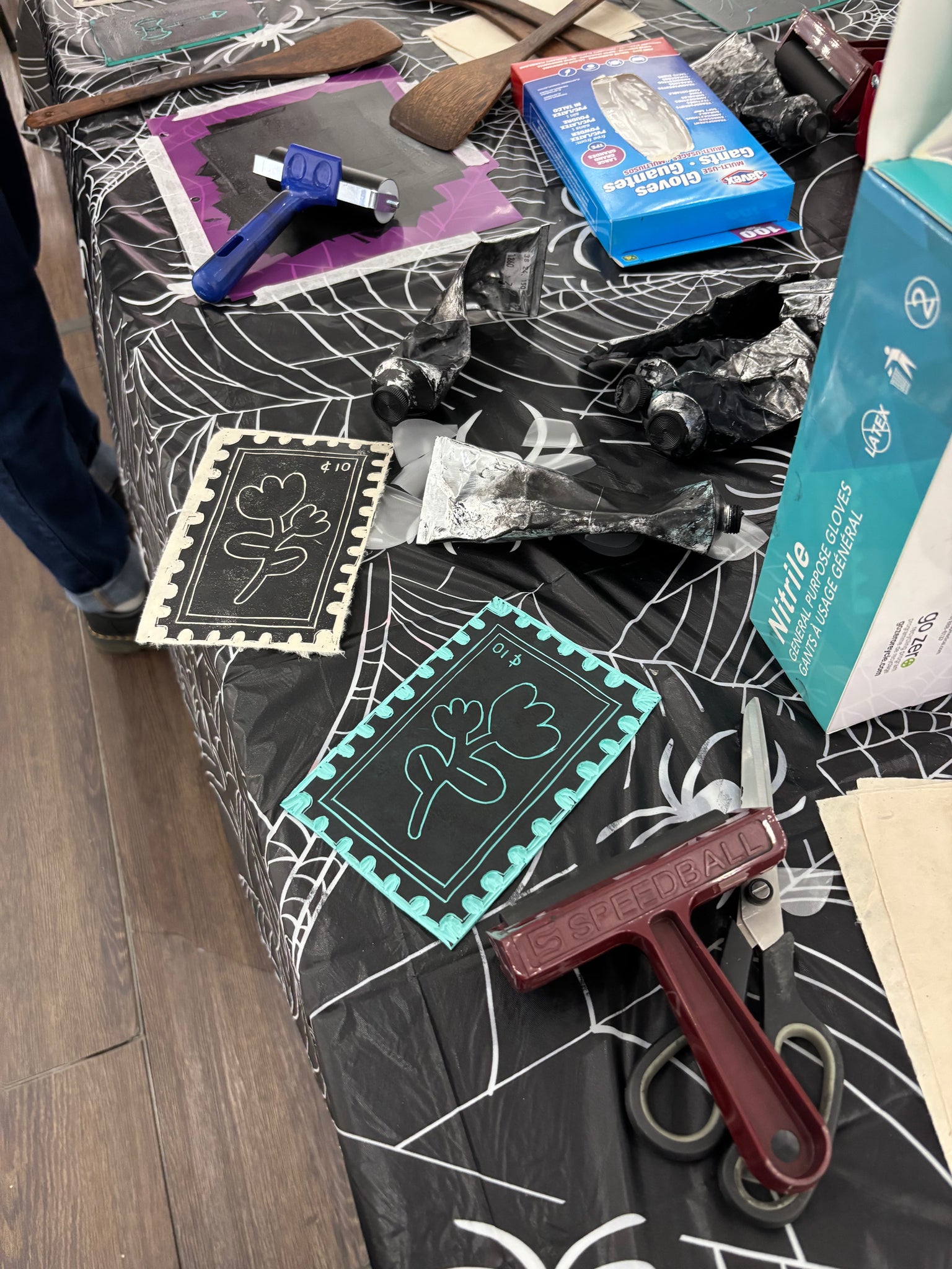Join us for a Lino Cut workshop with Yoana V., a local artist and printmaker. During the workshop. you will learn how to design, carve, ink, and create your own linocut prints. This guided workshop is designed for participants age 16+ at any level of artistic skill. We will go over vocabulary, techniques, materials, and safety before diving into creating your own lino block stamp! Each participant will get a chance to carve and print a 6x4 inch black and white print. At the end of the two hour workshop, you will be able to take home several black and white prints of your making, as well as your custom lino block and the know-how to make many more!